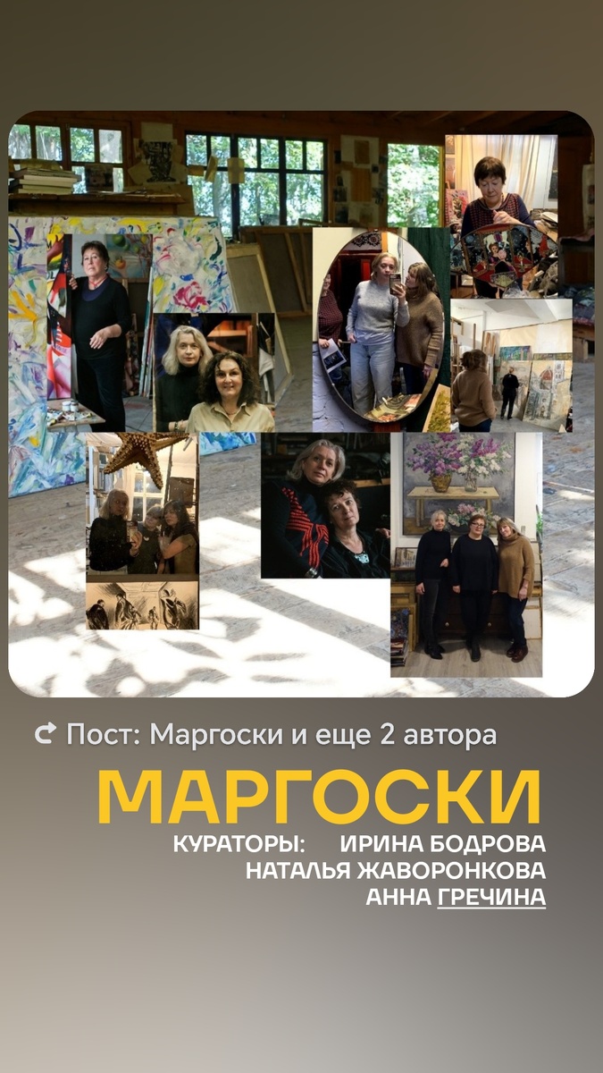 В этот раз мне, художнику Анне Гречиной, выпала честь не только участвовать в этом огромном проекте "МАРГОСКИ", где выставлены очень именитые художники, но и быть куратором. Я осуществляю информационную поддержку в социальных сетях, выкладываю публикации о наших художниках. Веду группу "МАРГОСКИ" ВКонтакте. Она получилась невероятно интересная, столько имён, столько работ, такие интересные судьбы