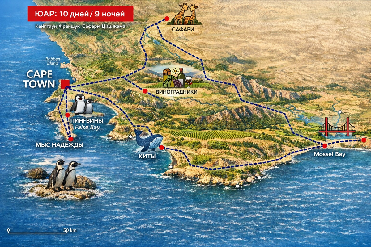 Кейптаун – Мыс Доброй Надежды – Винные долины – Сафари - Гарден Роут – Херманус