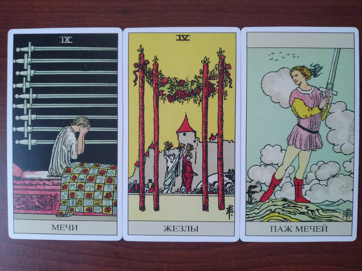 Вот уже 9 Марта 2026 года, совсем позабыл сделать расклад на март 2026 года относительно вероятности окончания затянувшейся конфронтации между нашими двумя странами. Сделаю расклад прямо сейчас, а результат будет опубликован на следующий день, 10 марта 2026 Вопрос к картам: Прекратятся ли в марте 2026 года боестолкновения между армиями РФ и Украины? Выпали карты: по центру четвёрка жезлов ( при этом данную карту я не вытягивал из колоды, она вылетела на стол сама, положил её в центр склада), слева выпала девятка мечей, справа Паж мечей Две карты из трёх относятся к масти мечей, одно только это уже говорит о негативе, об отсутствии прекращения конфронтации. Несмотря на довольно положительную карту в центре - четвёрки жезлов я даю ответ нет, в марте 2026 года боестолкновения не прекратятся, потому что есть одно серьёзное препятствие в лице президента Украины, который ничего не получает от завершения конфликта, но потерять может не просто много, а буквально всё, и деньги, и власть, и сво