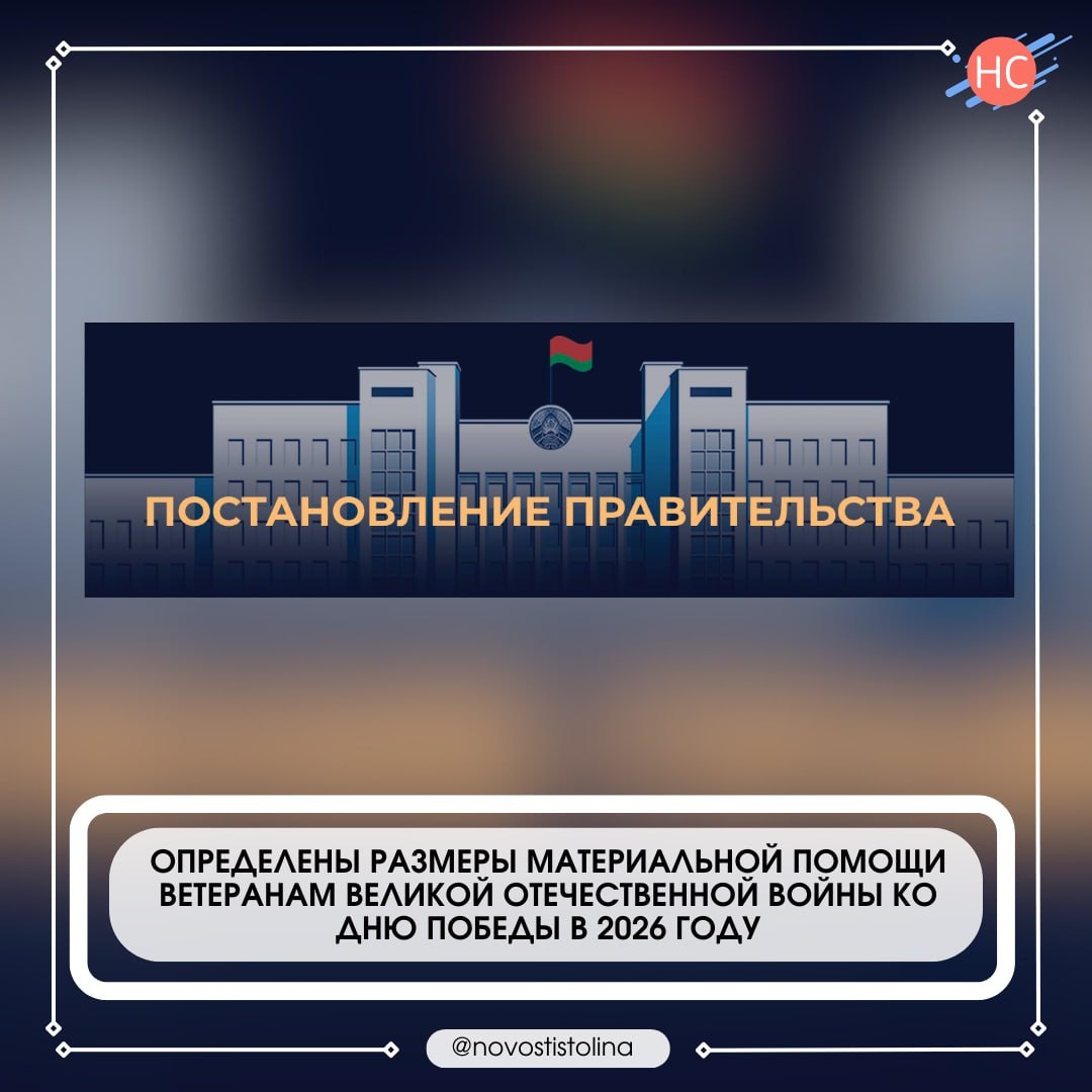 Постановление Правительства подготовлено во исполнение пункта 3 Указа Президента Республики Беларусь от 21 июля 2021 г. № 281 «О выплате ежегодной материальной помощи отдельным категориям граждан ко Дню Победы» Выплата материальной помощи будет проводиться в период с 4 по 8 мая 2026 г. в размерах: 5 000 рублей инвалидам и участникам Великой Отечественной войны, лицам, принимавшим участие в боевых действиях по защите Отечества до 3 сентября 1945 г. 2 500 рублей лицам, награжденным орденами или медалями СССР за самоотверженный труд в тылу в годы Великой Отечественной войны лицам, работавшим на объектах противовоздушной обороны, местной противовоздушной обороны, на строительстве оборонительных сооружений, морских баз, аэродромов и других военных объектов в пределах тыловых границ действующих фронтов, на прифронтовых участках железных и автомобильных дорог лицам, работавшим на предприятиях, в учреждениях и организациях города Ленинграда в период блокады с 8 сентября 1941 г. по 27 ян