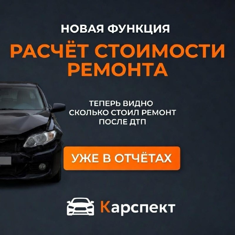 «А насколько сильное было ДТП?» В отчётах обычно есть сам факт аварии. Иногда — схема. Иногда — несколько сухих строк. Но по этим данным почти невозможно понять главное: какой был реальный масштаб ремонта. Потому что между «коснулись бампером» и «перебирали полморды» лежит огромная разница. В отчётах Карспект появился новый блок — расчёт стоимости ремонта. Теперь можно увидеть сумму, в которую оценивались повреждения. Иногда цифры оказываются совсем небольшими. Покраска элемента, фара, пластик — обычная история для города. А иногда открываешь расчёт и понимаешь, что удар был куда серьёзнее, чем выглядит на фотографиях из объявления. На вторичке такие вещи часто решают всё. Одна строчка «было ДТП» почти ничего не говорит. А вот сумма ремонта иногда рассказывает о машине гораздо больше. 🔧