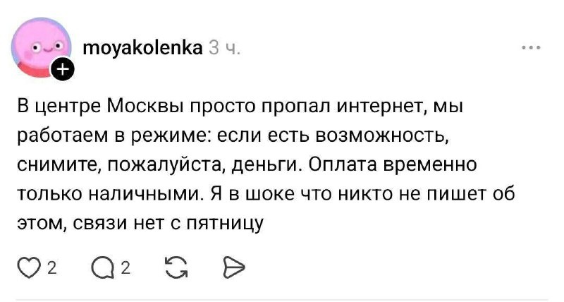 📶Центр Москвы выживает без интернета уже четвертый день — причину отключения связи не называют