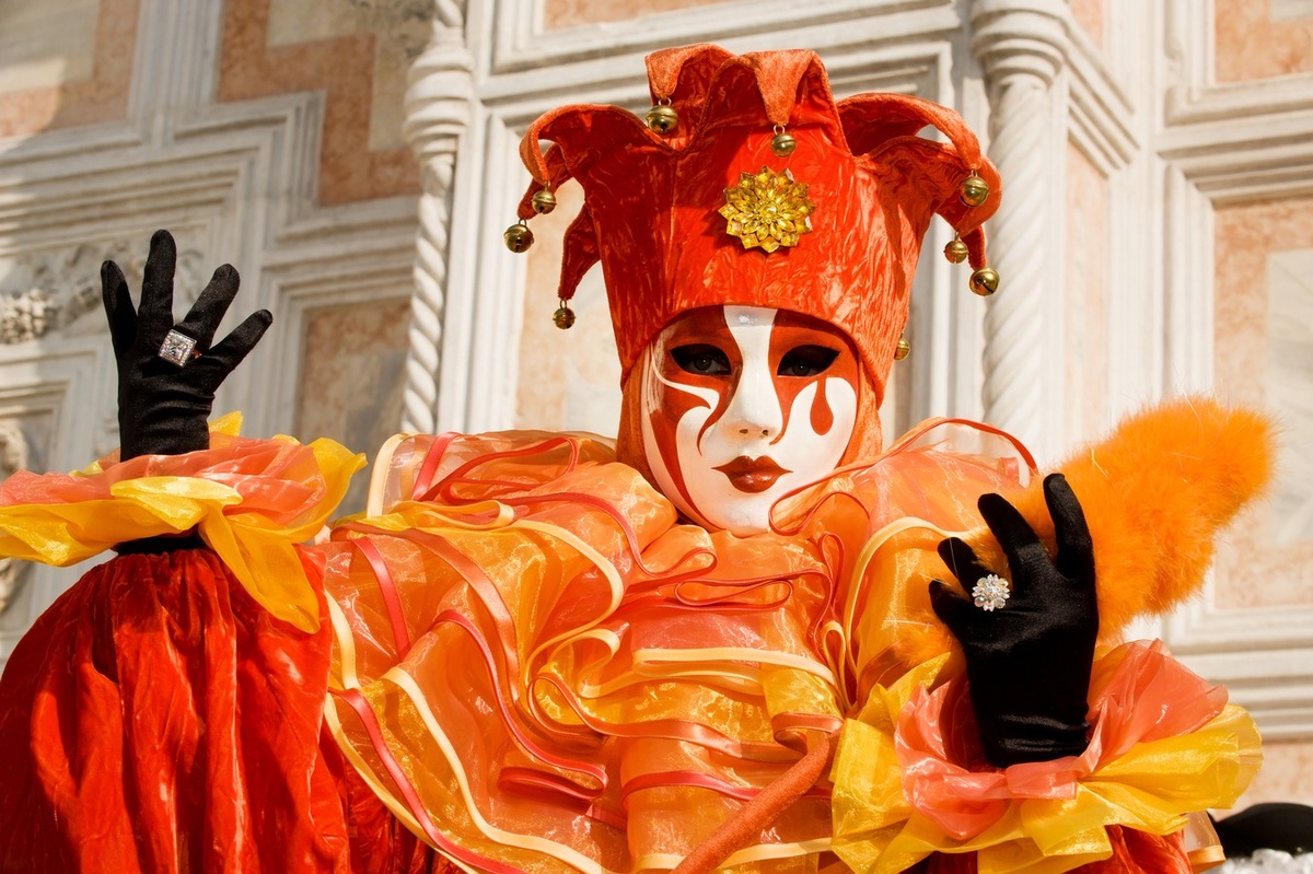 - Яркие детали карнавального венецианского костюма, способного удивить любого