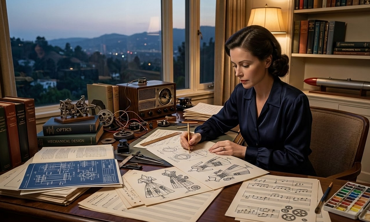 Лос-Анджелес, август 1942 года. В особняке на Бенедикт-Каньон сидит женщина, которую журнал Esquire только что назвал «самой красивой в мире». Перед ней — не зеркало и не сценарий. Перед ней разложены схемы торпедного управления, инженерные справочники и нотная бумага. На нотной бумаге она записывает формулы.