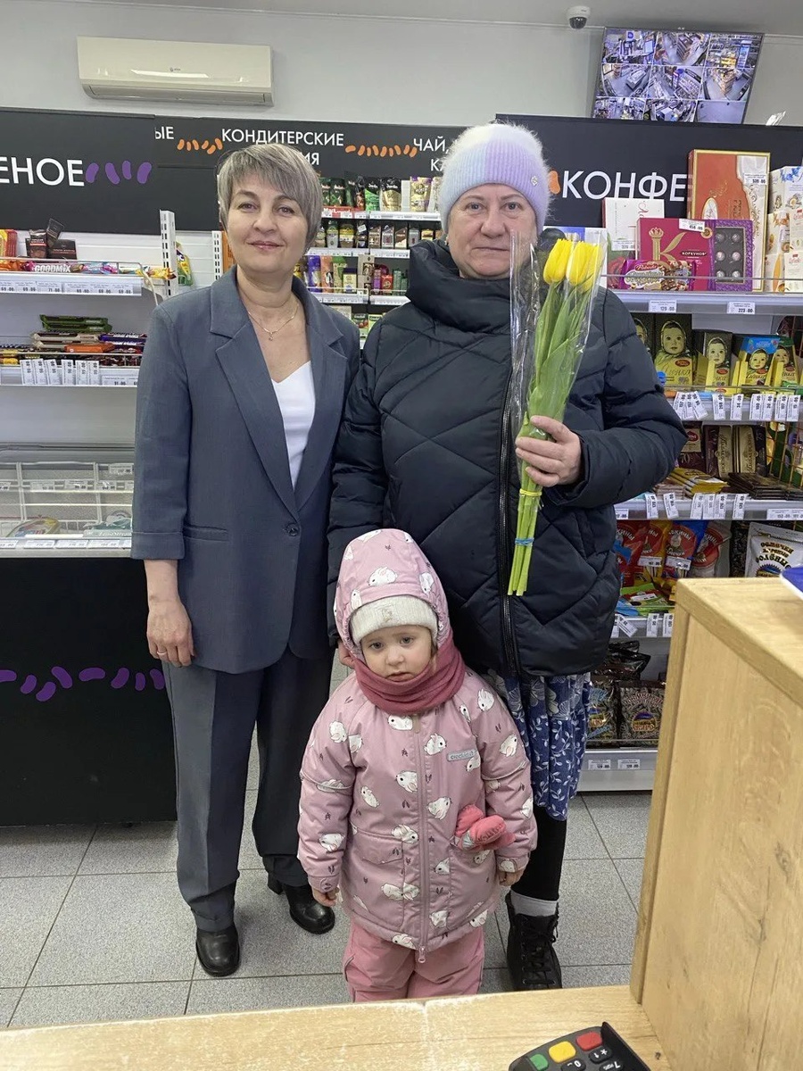 В магазине «Фасоль» предпринимательницы Натальи Осиповой на 8 Марта покупательниц поздравляли цветами.