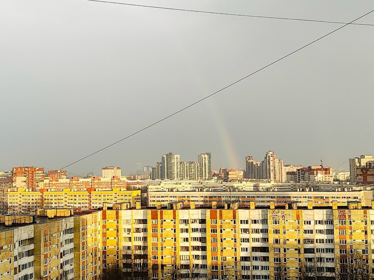 🌈 Радугу заметили в небе над Петербургом. Красоту "включили" аккурат после дождичка, который прошел в городе в районе 17 часов.