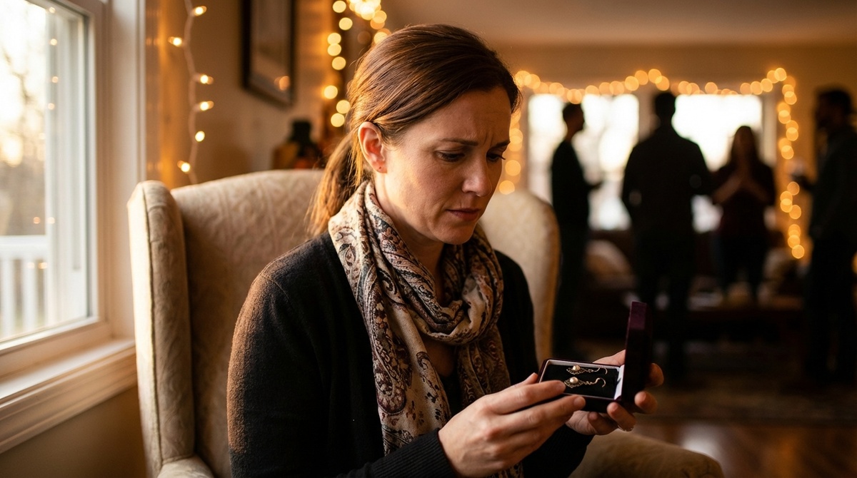 Не бархатную – в плотном картоне, перевязанную серебряной лентой. Положил на кухонный стол без слов, пока я жарила картошку, и отошёл в сторону. Я обернулась – он стоял у окна и смотрел во двор. Как будто ничего не произошло.