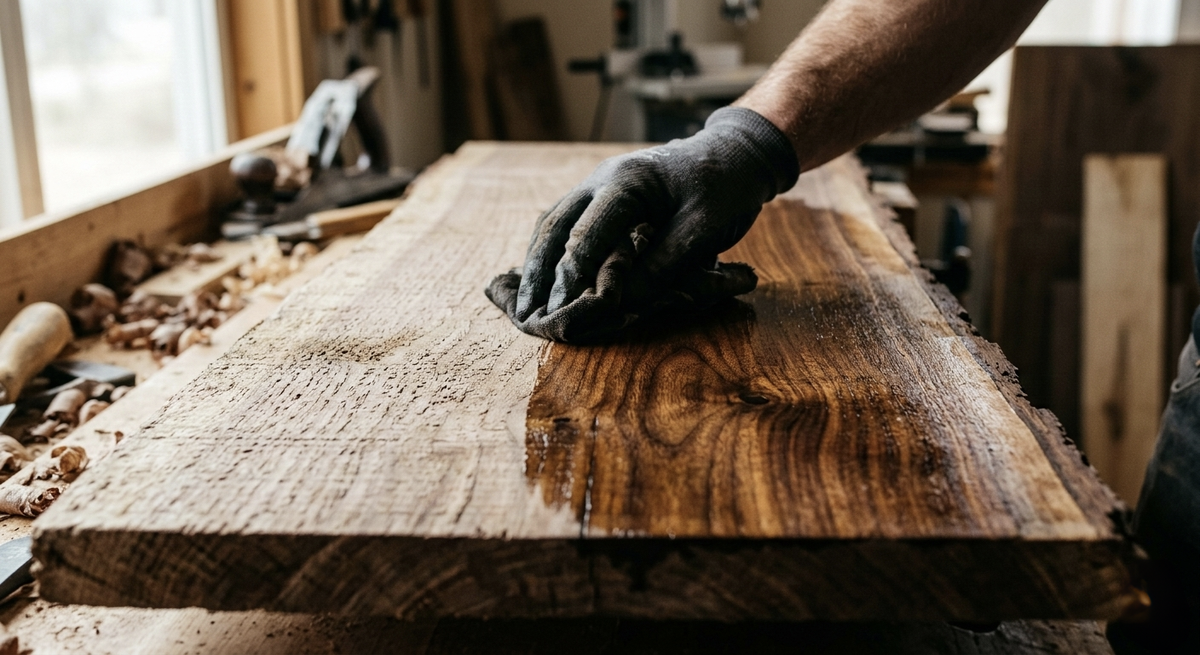 - Я принципиально редко использую глянцевые лаки. Лак создает «стеклянный» барьер, превращая живой материал в кусок пластика. Мой выбор — натуральные масла и воски. Они проникают внутрь волокон, проявляя рисунок («поджигая» дерево) и оставляя поверхность бархатистой на ощупь.