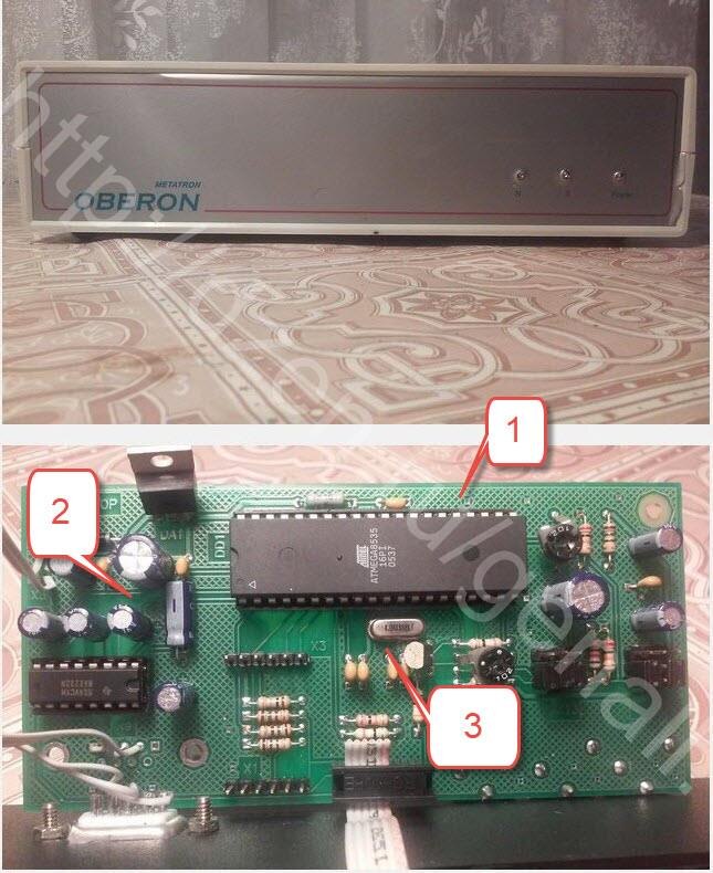 Наряду с функциональными возможностями устройства, многим интересна и его конструкция. Исходя из информации патента US 65549805 B1 В. Нестерова, первоначальный Метатрон собран из очень небольшого количества деталей. Появление дешевых микроконтроллеров еще больше упростило схемотехнику. На рис 1 – схема Метатрона-Оберона. 1- Микроконтроллер, отвечающий за обработку сигналов. 2- Блок стабилизированного питания. 3- Генератор частоты на основе кварцевого резонатора. Оберон комплектовался наушниками для взаимодействия с пациентом. 1 -Диод генерировал «белый шум», прерываемый на определённых частотах по алгоритму. 2- катушка от обычного наушника фиксировала резонансы. И все. Где-то использовали 2 диода вместо одного – 1. И применили уже модифицированную катушку для приема сигнала -2. С появлением usb возникает необходимость еще в микросхеме согласования интерфейсов. Поэтому, микросхем может быть две или даже три. В Маджерике Биотест Про все аналогично. 1,2.3.4 – это микроконтроллеры обработ