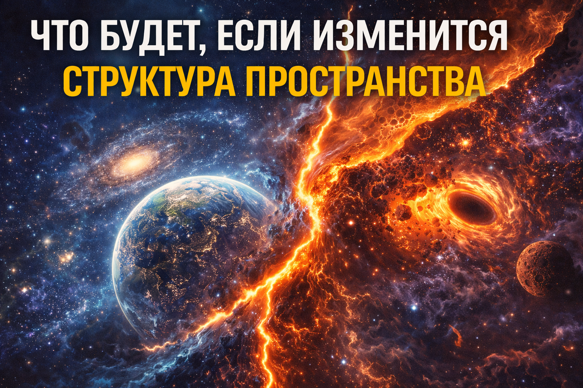 Когда мы говорим о космосе, обычно представляем звезды, планеты и галактики. Но на самом деле всё это - лишь «содержимое» Вселенной. Главная сцена, на которой происходят все события, - это само пространство. Физики давно пришли к выводу, что пространство не является пустотой. Оно имеет структуру, свойства и даже может искривляться. И если эта структура изменится, последствия будут куда серьезнее, чем взрыв сверхновой или столкновение галактик. До XX века считалось, что пространство - это просто фон. Нечто вроде пустой комнаты, где происходят события. Но теория относительности Альберта Эйнштейна показала, что пространство и время образуют единую систему - пространство-время. Масса и энергия могут искривлять его, создавая то, что мы воспринимаем как гравитацию. Когда Земля вращается вокруг Солнца, она на самом деле движется по искривленной геометрии пространства-времени. Современная физика показывает, что даже «пустое» пространство не пусто. Оно наполнено квантовыми полями. Вакуум постоя