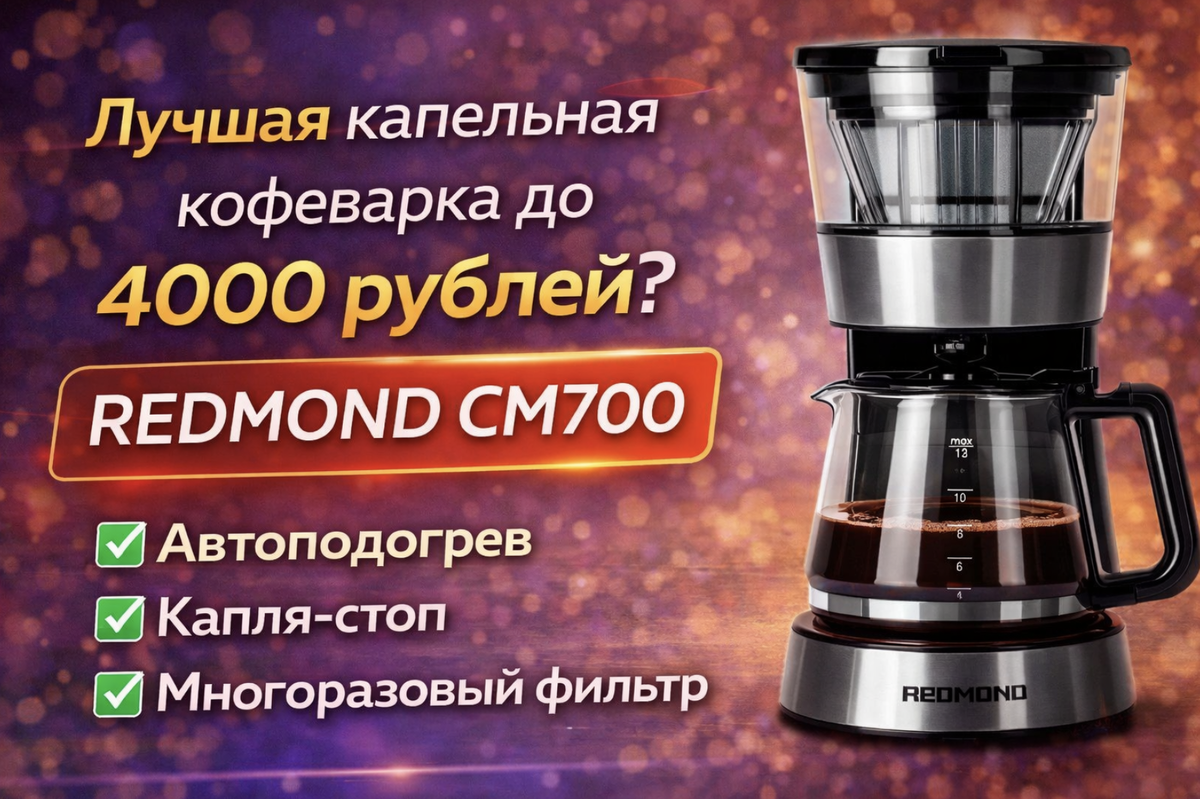 На этом фоне капельная кофеварка REDMOND CM700 выглядит очень интересно. За 3 976 рублей это один из тех вариантов, который закрывает основные бытовые задачи без лишних переплат.