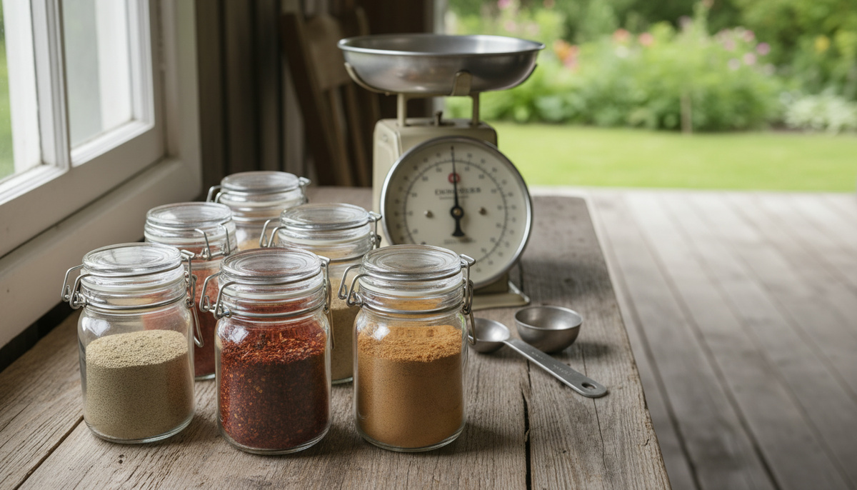 Ниже — 6 рабочих смесей с точными цифрами: граммы на 100 г смеси и сколько смеси нужно на 1 кг мяса/рыбы. Плюс — хранение, маркировка и как за минуту превратить сухой руб в пасту, чтобы ничего не улетало на ветру.
