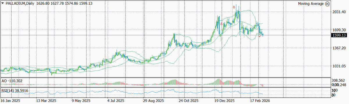 ранее открытые позиции от 17.10.2025 по шорту палладия и платины с третьим плечом от уровней цен 60,9 и 100 соответственно. Снижение цен составило примерно 17% на палладий и от 20% до 21% на платину (в среднем 19%)