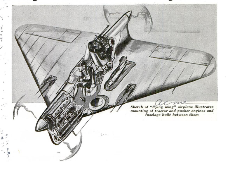 По внешнему виду это летающее крыло. Имеется два двигателя: один спереди, тянущий, а другой сзади, толкающий, а фюзеляж размещен в «основании» крыла между двигателями. Подвижные поверхности