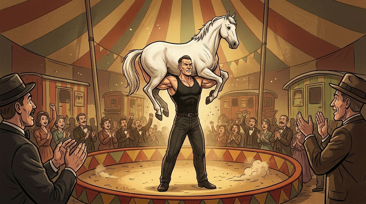 Вы когда-нибудь задумывались, может ли человек весом всего 80 килограммов нести на плечах лошадь или ловить руками 90-килограммовое пушечное ядро? В начале XX века мир узнал имя человека, который превратил человеческое тело в стальную машину. Его звали Александр Иванович Засс, но история запомнила его как «Удивительного Самсона». Александр родился в 1888 году в Виленской губернии. Он не был одарен богатырским ростом или огромными мышцами от природы. Секрет его силы крылся в... цепях. В юности, работая в цирке и тренируясь самостоятельно, Засс понял важную вещь: объем мышц не равен их силе. Он начал разрабатывать систему изометрических упражнений. Вместо того чтобы просто поднимать тяжести, он пытался разорвать толстые цепи или согнуть железные прутья, которые изначально были неподвижны. «Большие бицепсы не всегда говорят о большой силе, так же как большой живот не говорит о хорошем пищеварении», — любил повторять Засс. Настоящая проверка на прочность ждала Александра во время Первой ми