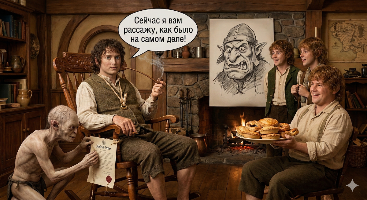 Так, народ, слушайте сюда! Вы не представляете, ЧТО я вчера пережил. Вернее, не вчера, а.... да какая разница, когда это было, время теперь вообще понятие растяжимое, как эльфийская жвачка. Сейчас будет структурированный пересказ с максимальным количеством юмора и деталей. Я объединю всё, что мы уже обсуждали, но разложу по полочкам, как Сэм раскладывает припасы по рюкзакам. Сэм, кстати, будет вставлять комментарии, потому что он считает, что в прошлый раз я его образ недостаточно раскрыл. А Голлум будет просто сидеть и шептать "прелесть", потому что, ну куда его девать?