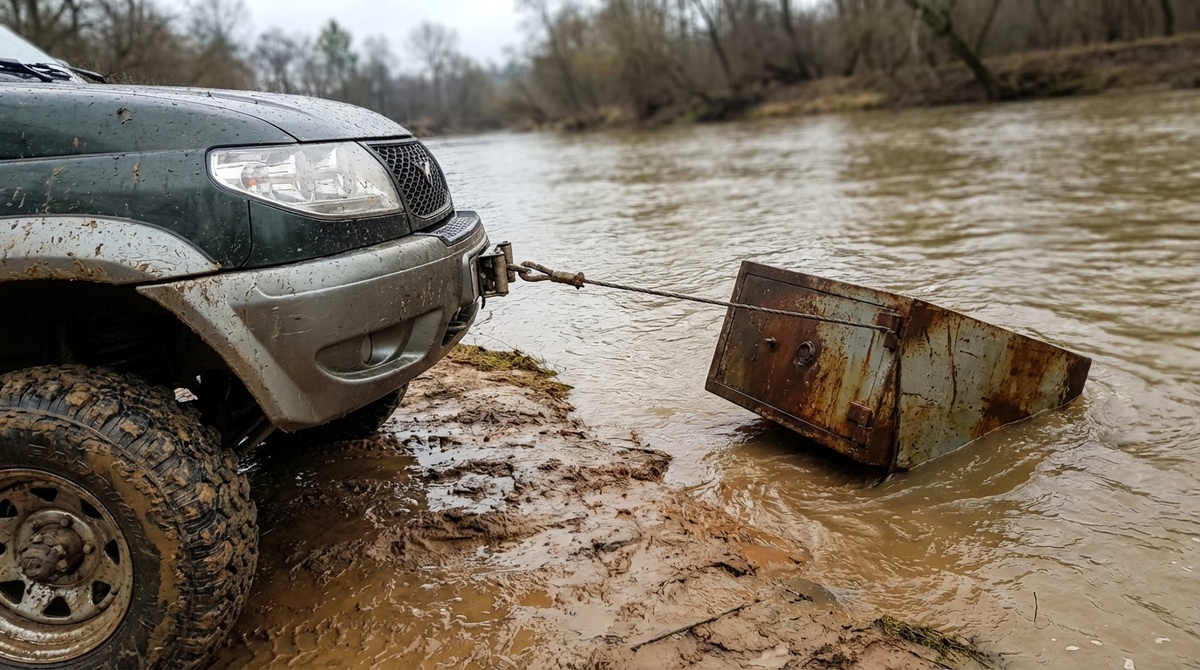 Зацепил на дне тяжелый металлический сейф. Что мы нашли внутри, когда вытащили его автомобильной лебедкой