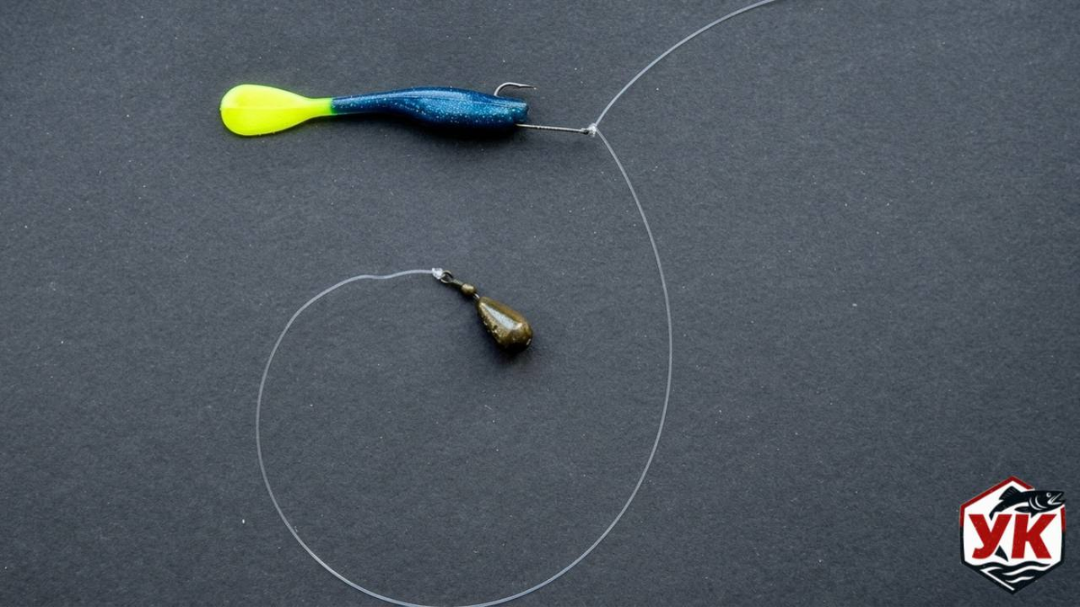 Это разнесённая оснастка, где крючок с приманкой находится выше грузила. Крючок вяжется прямо к леске, груз — на конце. Приманка висит в толще воды и играет максимально естественно. Принцип: груз на дне — приманка над ним. Даже на месте она соблазнительно колеблется. 📍 Где и когда применять