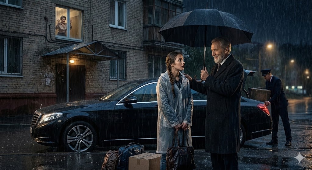 На четвертом этаже, притаившись за занавеской, Маргарита Степановна злорадно наблюдала за сценой. Она ожидала увидеть дешёвое такси, а увидела автомобиль, стоимость которого превышала цену их квартиры. Когда лицо мужчины на секунду осветил фонарь, женщина охнула и выронила бокал.