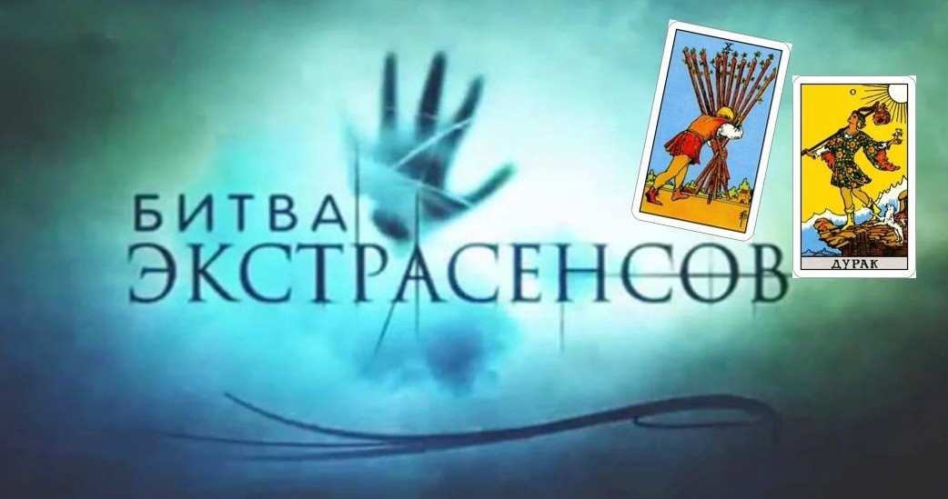 Здравствуйте! На прошлой неделе на канале ТНТ стартовал новый сезон «Битвы экстрасенсов», и для меня это отличная возможность проверить свои навыки работы с Таро. Я делаю тестовые расклады на задания, которые предлагаются участникам битвы и смотрю, как отыгрываются карты. В первом выпуске нужно было отгадать, кто или что находится за черной ширмой. Я вытянула из колоды две карты с вопросами, и вот что у меня вышло: это живое или неживое – 10 жезлов, описание внешнего вида – Шут. Оказалось, что за ширмой находилась девушка, сидящая внутри огромных песочных часов. Девушку поместили в нижний резервуар, а сверху на нее сыпался песок, постепенно заполняя резервуар до самого верха. Некоторые участники испытания довольно точно описали происходящее за ширмой, сказав, что ощущают сильное сдавливание, дискомфорт в области груди, тяжесть, асфиксию, нарастающий страх. А один из экстрасенсов заявил, что за ширмой находится кто-то, кто подвергается опасности и его нужно быстрей спасать, пока не стал