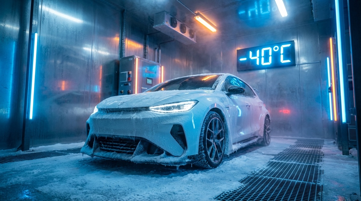 - Сначала -20 °C (стандартная московская зима), затем -30 °C (Урал), и наконец, экстремальные -40 °C (Якутия, Сибирь). Машины вымораживались ровно сутки, чтобы батареи промерзли до самого основания.