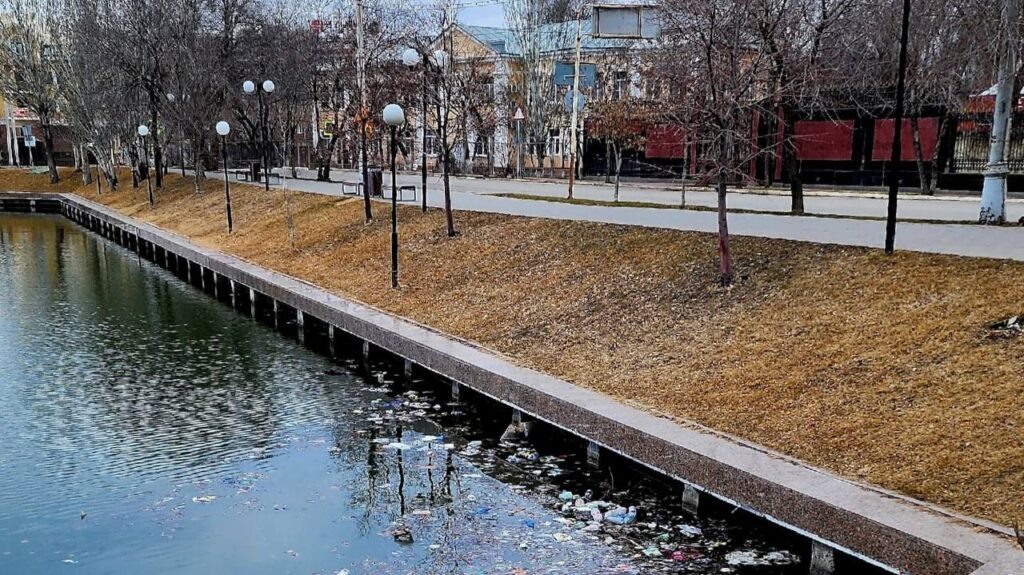 Лебединое озеро в Астрахани после схода льда покрылось слоем мусора