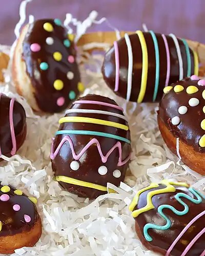 Пончики в форме пасхальных яиц - отличный рецепт для пасхального стола. Всем понравится украшать глазурованные пончики в виде пасхальных яиц. Наполните их джемом, лимонным курдом или вашей любимой кремовой начинкой. Обязательно попробуйте их приготовить.
