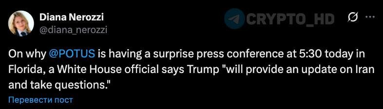🇺🇸🇮🇷 В 00:30 мск (10 марта) Дональд Трамп предоставит обновленную информацию по Ирану и ответит на вопросы журналистов – репортер Белого дома