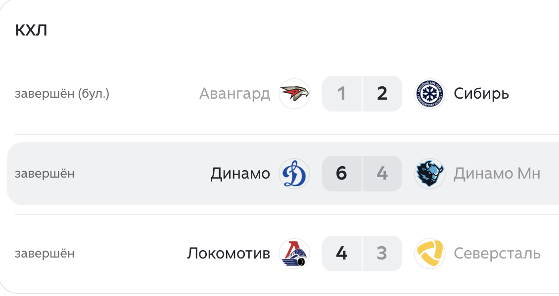 Авангард удивительным образом уступил Сибири. В булатной серии случился эффект параллакса, и шайба после броска игрока омской команды осталась лишь на линии ворот Красоткина. Новосибирцы забрали важнейшие два очка в упорной борьбе с Амуром за плей-офф. Динамовское дерби выдалось очень результативное, целых 10 шайб!!! Минчане хоть и выше в таблице, но противостояние проиграли. Огненный матч в Ярославле случился сегодня. Локо сравняли счет за 30 секунд до конца третьего периода и игра отправилась в Овертайм. Там череповчане уступили и обеспечили Локомотиву первое место в Западной конференции в этом сезоне. Удастся ли им догнать Металлург в борьбе за Кубок Континента🧐
