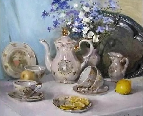 Я выбрала картину "Натюрморт с чайным сервизом и лимонами"