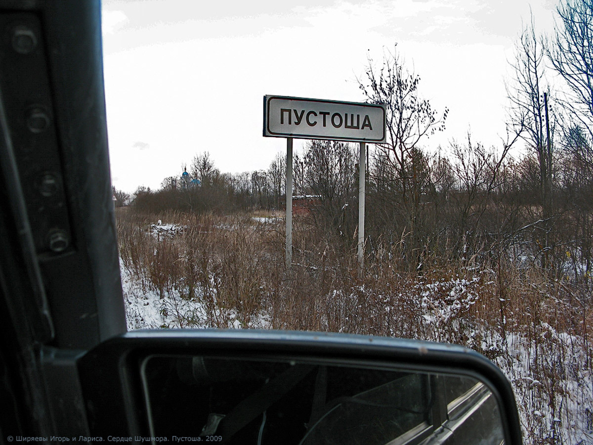 В этом маршруте есть небольшая тонкость. Рядом находятся два населенных пункта с похожими названиями: поселок Пустоши и село Пустоша. Подъезжая к Черустям, мы спокойно проезжаем прямо, не обращая внимания на указатель налево на Пустоши и лишь на следующем повороте поворачиваем налево на Пустоша. Мы приближаемся к сердцу Шушмора.