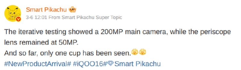 В новых утечках сразу два будущих флагмана связывают с переходом на 200-Мп основную камеру, и пока это выглядит как ранний тест, а не как финальная спецификация: • По свежим слухам, iQOO 16 тестируется с основной камерой на 200 Мп • Параллельно той же конфигурацией в утечках начали связывать и OnePlus 16 • В обоих случаях также фигурирует перископический модуль на 50 Мп • Для iQOO 16 отдельно упоминают возможный переход с 1.5K на 2K-дисплей • Это заметный сдвиг относительно текущих моделей, где основная камера у серии пока остаётся 50-Мп • На данном этапе речь идёт именно о внутреннем тестировании устройств, а не о подтверждённом финальном железе • Точные сенсоры, оптика и остальные характеристики пока не раскрыты • Поэтому историю рано подавать как готовый апгрейд, но сам тренд уже читается — бренды явно смотрят в сторону 200 Мп не только для телевиков, но и для основной камеры 200 Мп в главной камере флагмана — реальный шаг вперёд или снова гонка цифр? 🤷♂️ 🌐 Наши каналы 🗺 #vivо