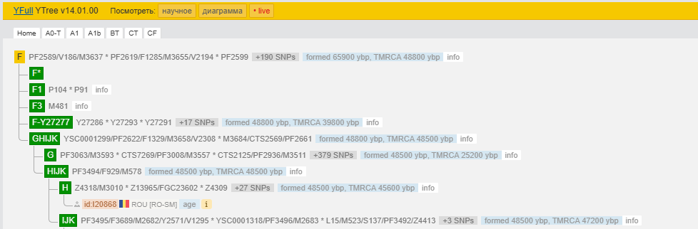 Обратимся к самой ветвистой Y-гаплогрппе F, большинство современных людей внеафриканского человечества – это потомки этой гаплогруппы. В данный момент нас интересует одна из её дочерних гаплогрупп K. Которая произошла от макрогруппы IJK – последняя строка в предыдущей схеме. K YSC0000055/PF5459/M2348/A5331 * PF5495/F2006/M2688/V3169 * PF5488/M2351+18 SNPsformed 47200 ybp, TMRCA 45400 ybp Скорее даже её дочерняя группа К2. K2 PF5852(H) * L405/PF5990 * MF44733/M1221/YSC0000186/PF5911/P331+2 SNPsformed 45400 ybp, TMRCA 44300 ybp От которой произошла группа K2b, которую, в том числе выявили в палеостанках из пещеры Тяньюань в Китае возрастом 40 тысяч лет. K2b PF5852(H) * L405/PF5990 * MF44733/M1221/YSC0000186/PF5911/P331+2 SNPsformed 45400 ybp, TMRCA 44300 ybp От неё произошли ещё ряд групп, в том числе: M и S. Это достаточно специфические гаплогруппы, собственно их представители в древности жили в Австралии, Новой Гвинее и некоторых рядом лежащих островах. Поэтому и считается, что эти г
