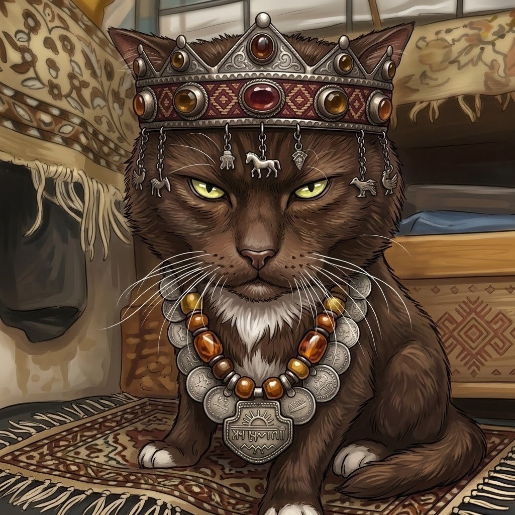 Если вы думали, что монархия осталась в учебниках истории, то спешим вас расстроить (или обрадовать): в нашем приюте вовсю правит Царь Удмуртов. Этот солидный мужчина прибыл к нам проездом на одну ночь, но, как и полагается истинному правителю, быстро понял, что здесь неплохо кормят и есть подданные. Сначала мы думали назвать его просто Удмуртом (потому что Бурят у нас уже есть), но морда лица быстро продиктовала уточнение — только Царь! Царский рацион: Царь Удмуртов презирает диеты и светские условности. Его величество изволит кушать: • Голубцы. Да, вы не ослышались. Царь лично инспектирует тарелки и считает, что капуста с мясом — это база. • Сметану и яички. Натуральные продукты для поддержания блеска царской шерсти. • Всё, что плохо лежит. Подданные (другие коты) обычно просто стоят в сторонке и смотрят, как Царь трапезничает. Возражения не принимаются. Боевые шрамы и «фибриновая бляшка»: Царь — мужчина со стажем, ему точно больше 10 лет. На шее у него обнаружилась киста размером
