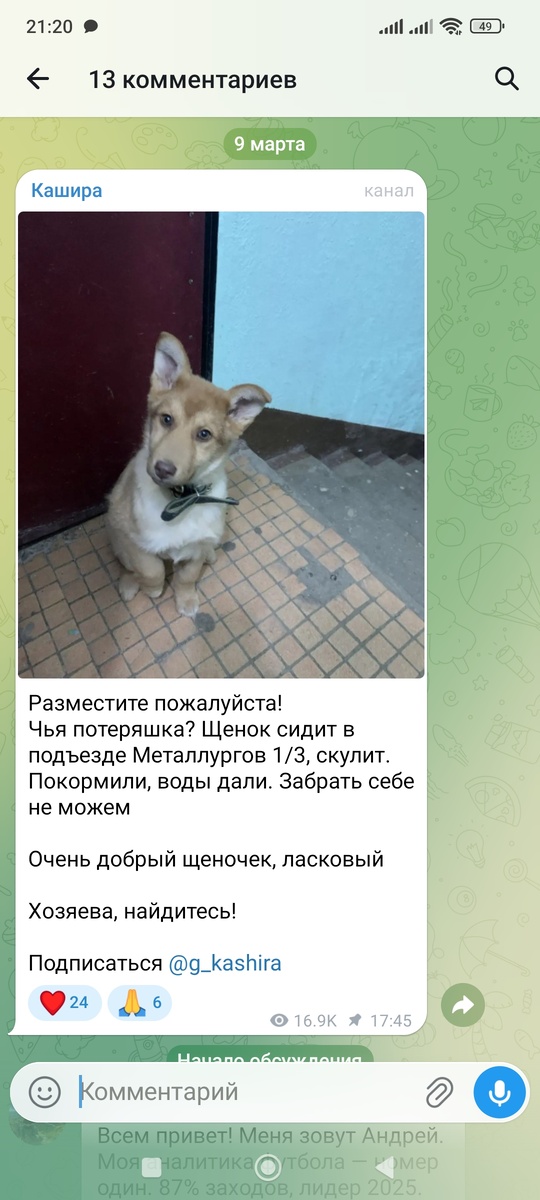 Вечером 09 марта появился в местной группе в ВК пост