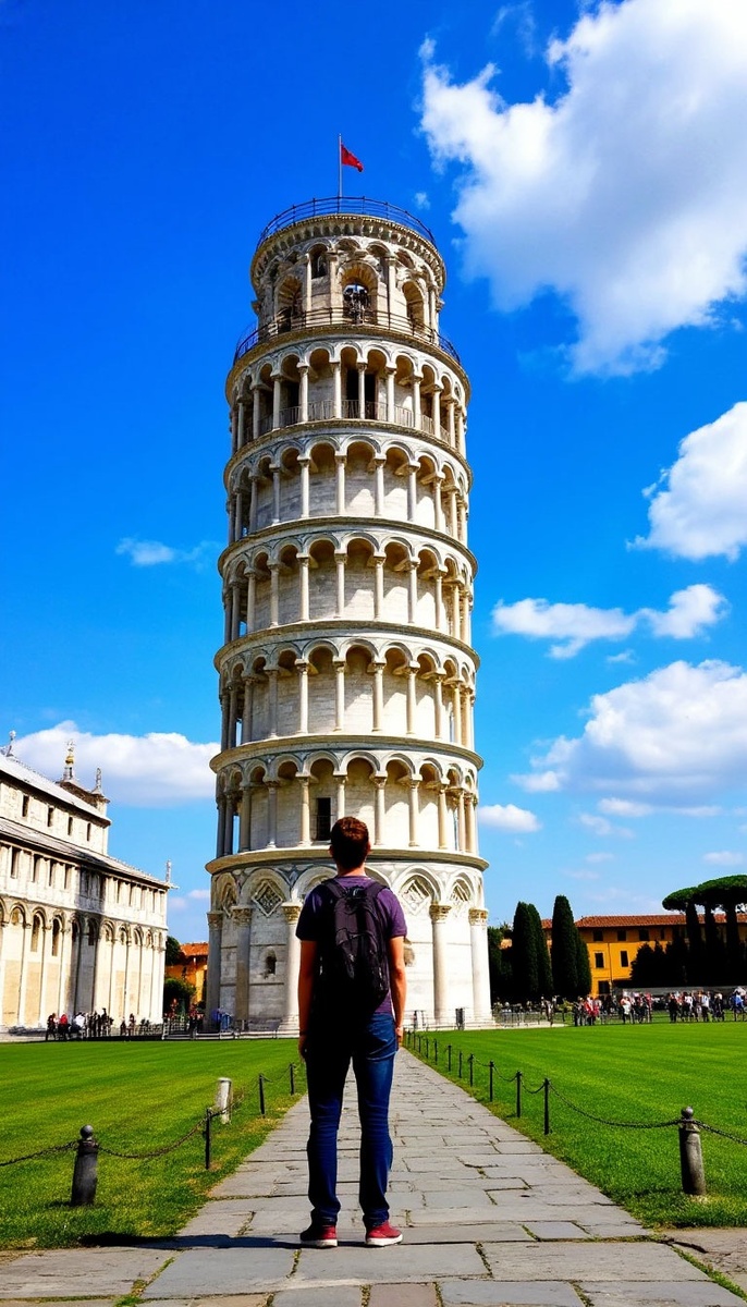 1. Подпирание и удержание. Ищите большие объекты вдалеке (башни, столбы, деревья, купола зданий) и «подпирайте» их рукой или ногой рядом стоящего человека. Снимайте с низкой точки.