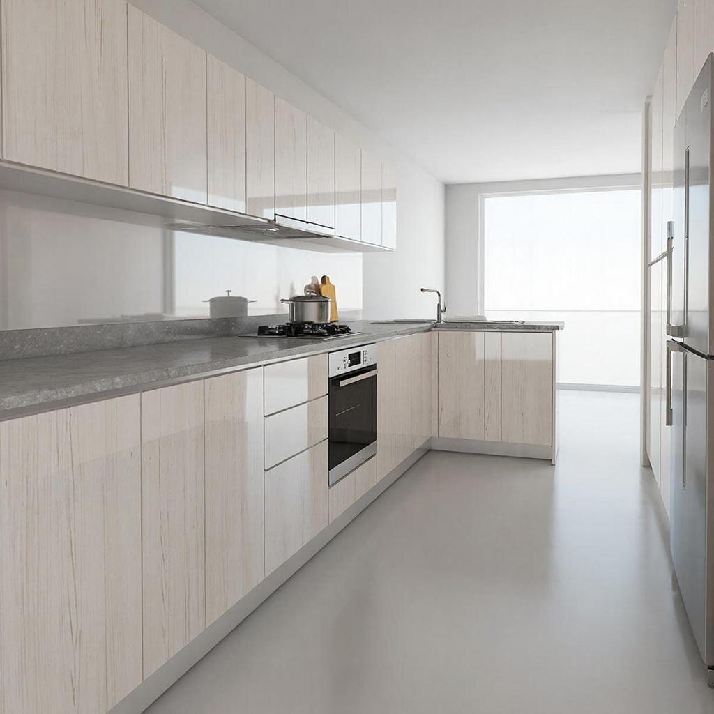 Наконец, оставьте запас на неровности. Регулируемые ножки компенсируют перепад пола до 150 мм, плинтус закрывает зазор снизу, а световой карниз или молдинги — зазор между верхними шкафами и потолком.