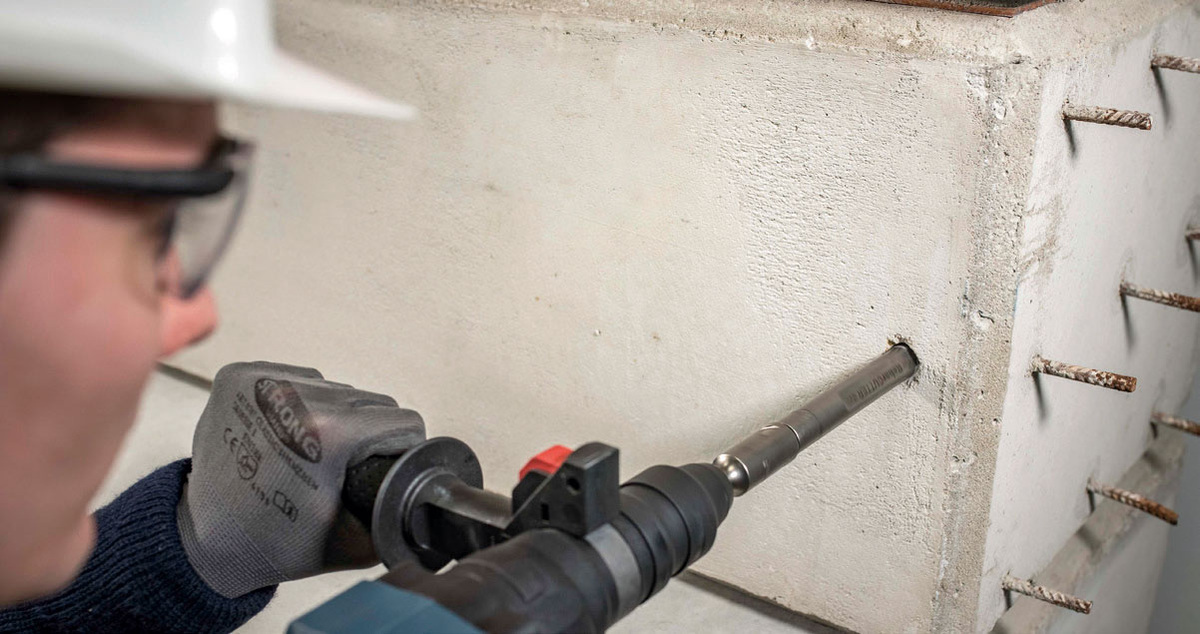 Для монтажника скрытая в толще бетона арматура — настоящая головная боль. Детектор не всегда видит глубоко залегающие прутья, а анкеру они могут оказаться слишком близко. Бывает и так, что отверстие нужно сделать именно здесь, где точно есть арматура, и другого выхода нет. Решение этой проблемы предлагает немецкая компания Heller, производитель высококачественного бурового инструмента. Их специальное сверло для арматуры — Rebar Cutter (в переводе «резчик арматуры»). Мы протестировали его и убедились: инструмент действительно эффективный и удобный. Rebar Cutter, несмотря на название, конструктивно ближе к буровой коронке: это полый цилиндр (диаметром от 12 до 30 мм) с тремя глубоко утопленными твердосплавными зубьями. Оно предназначено для перфораторов с патроном SDS-Plus (адаптер приобретается отдельно). Это сверло — часть модульной системы Heller Ratio, своеобразного «конструктора» для строителя. Система позволяет собирать инструмент нужной длины и конфигурации для работы с бетоном, к