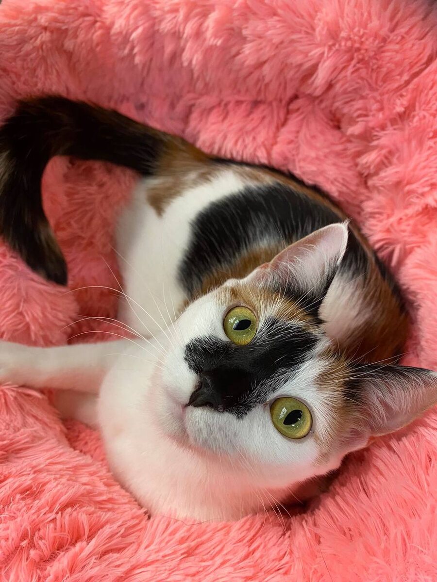 Очаровательная кошь - яркая, весёлая, компанейская и так никем и не замеченная. Вот уже год с хвостиком сидит в поисках дома. Тикки отлично ладит с сородичами, довольно быстро раскрывается с людьми, всегда в хорошем настроении. Она одновременно харизматичная и нежная. И очень запоминающаяся внешность у неё, конечно. Уже привитая, стерилизованная, чистоплотная Тикки давно готова ехать домой. По возрасту ей около двух лет. 89998908824 Москва и МО Кому кошку-праздник?