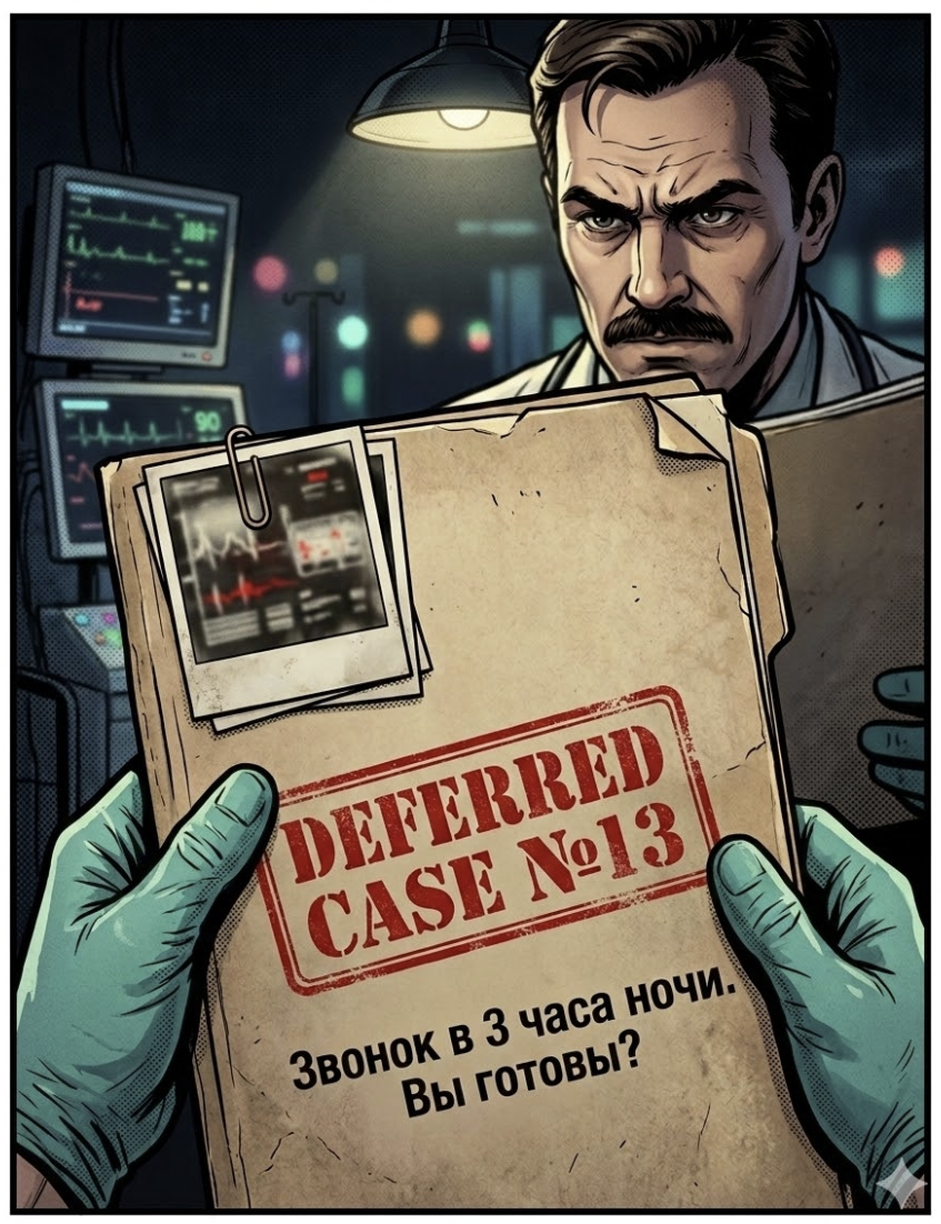 В анестезиологии и реанимации мы привыкли к экстремальным значениям. Но иногда природа подбрасывает кейсы, которые заставляют сомневаться в базовых законах физиологии. Сегодня мы открываем архивное дело «Deferred Case №13». Представьте: 3 часа ночи, холодный свет ламп ОРИТ и пациент, который по всем медицинским канонам уже должен быть мертв. Тот самый звонок, которого боится каждый дежурный врач. На столе — папка с делом №13. Мы входим в зону, где протоколы бессильны. Вы готовы принять вызов? Анализы обескураживают. Тромбоциты рухнули с нормальных 475 до 45 тыс/мкл всего за сутки. В обычной практике мы бы уже заказывали тромбомассу, ожидая профузного кровотечения. Но здесь — ни одной петехии. Цифры на мониторе кажутся ошибкой датчиков. ЧСС 4 удара в минуту. Температура тела 8.0°C. Согласно Триаде Вирхова, при таком замедлении кровотока сосуды должны превратиться в сплошной тромб. Осмотр не добавляет оптимизма: глубокая кома, зрачки — «в точку», дыхание едва уловимо. Организм словно за