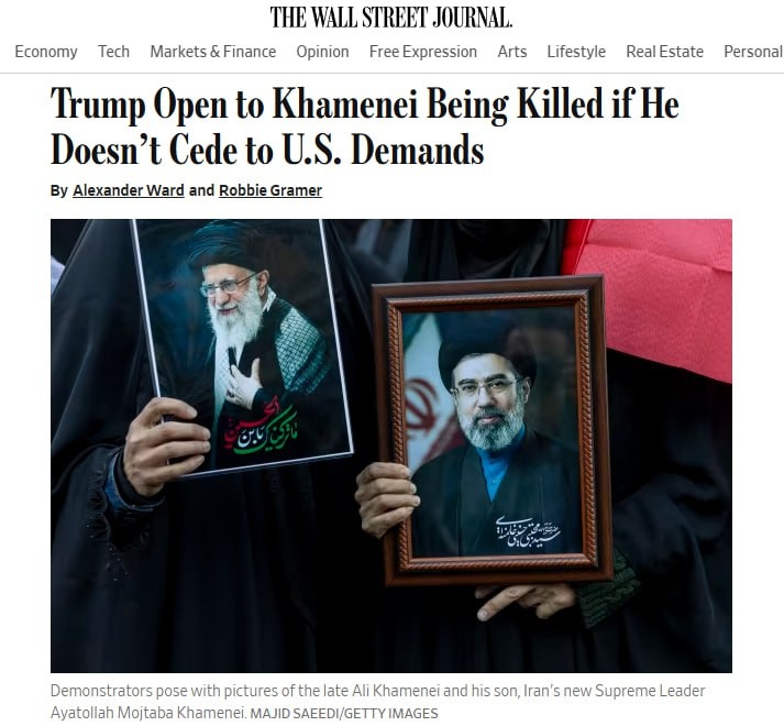 ❗️ Трамп не против убийства лидера Ирана Хаменеи, если тот не пойдёт на уступки США, — The Wall Street Journal