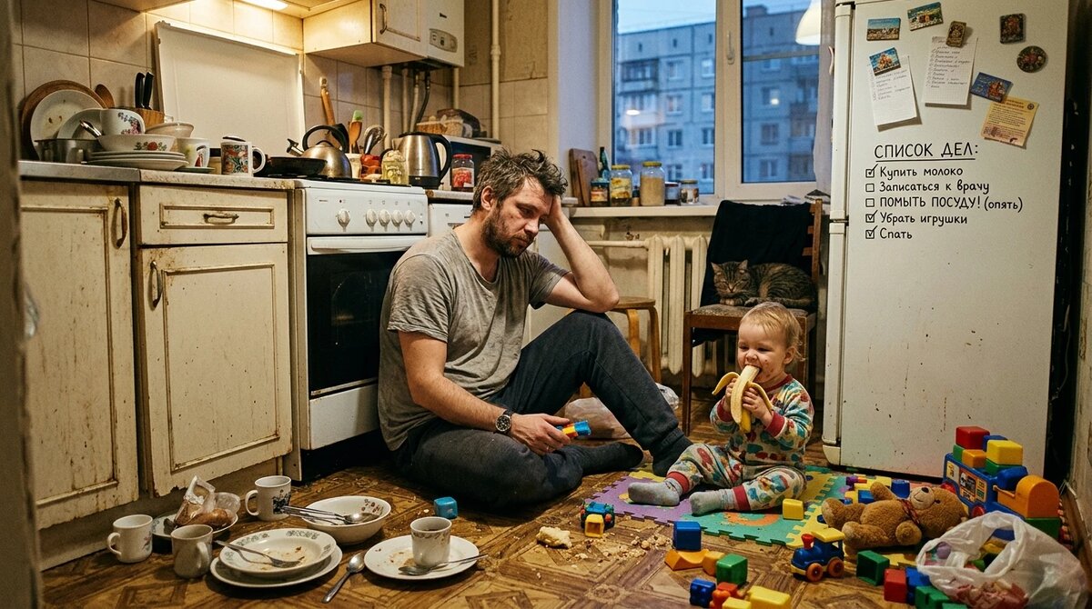 Лена делает это каждый день. Не три пункта – все двадцать три. И готовит, и стирает, и убирает, и с ребёнком, и в магазин, и к врачу, и оплатить, и позвонить. Каждый день. С шести утра до одиннадцати вечера. Без перерыва, без обеда, без отгула. Без благодарности. Без простого «спасибо, Лен».