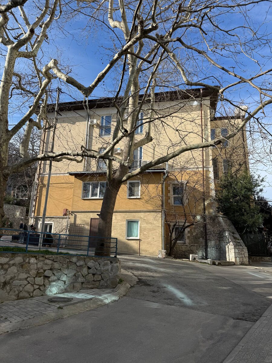 📍Здание бывшей больницы для служащих имения «Ливадия» Деятельность её была направлена на медицинское обслуживание высочайшего двора, а также ливадийских служащих и их семей. Больница размещалась в одной из многочисленных построек, сооружённых в 1860-е гг. архитектором Ипполитом Антоновичем Монигетти. Представляла собой каменное здание средних размеров. Со стороны Казачьей дороги она была одноэтажной, с небольшим полуподвальным этажом, а с противоположной, обращённой к морю, двухэтажной, с открытыми верандами. Сегодня веранд уже нет, а сверху надстроено 2 этажа. Южный фасад дома укрепляли массивные каменные контрфорсы (сохранились до сих пор и видны на фото). Рядом находился небольшой домик - прачечная с сушилкой, через дорогу, в подпорной стене, был устроен склад для хранения медикаментов, а поодаль - маленькая покойницкая. В здании больницы размещались приёмный кабинет, перевязочная, аптека, небольшое стационарное отделение на несколько коек, родильное отделение, а также жилые