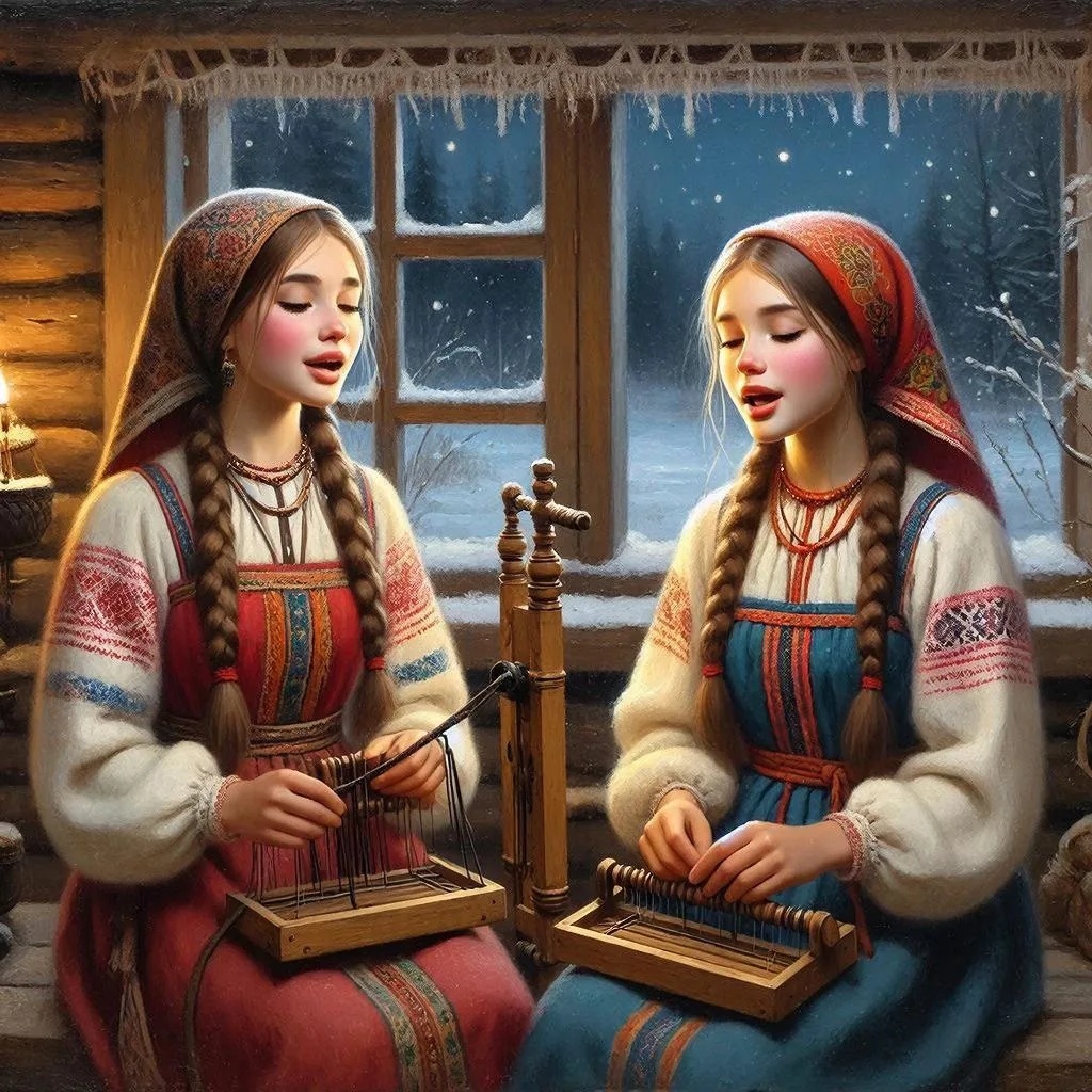 🧶 А теперь представьте: вечер, тёплая изба, горит лучина, пахнет сеном и пирогами. Девушки сидят за прялками, ловко сучат нить и поют. В дверь входят парни. Один из них подходит к понравившейся девушке и ставит перед ней зажжённую свечу. Она поднимает глаза, улыбается и подвигает лавку — садись рядом.