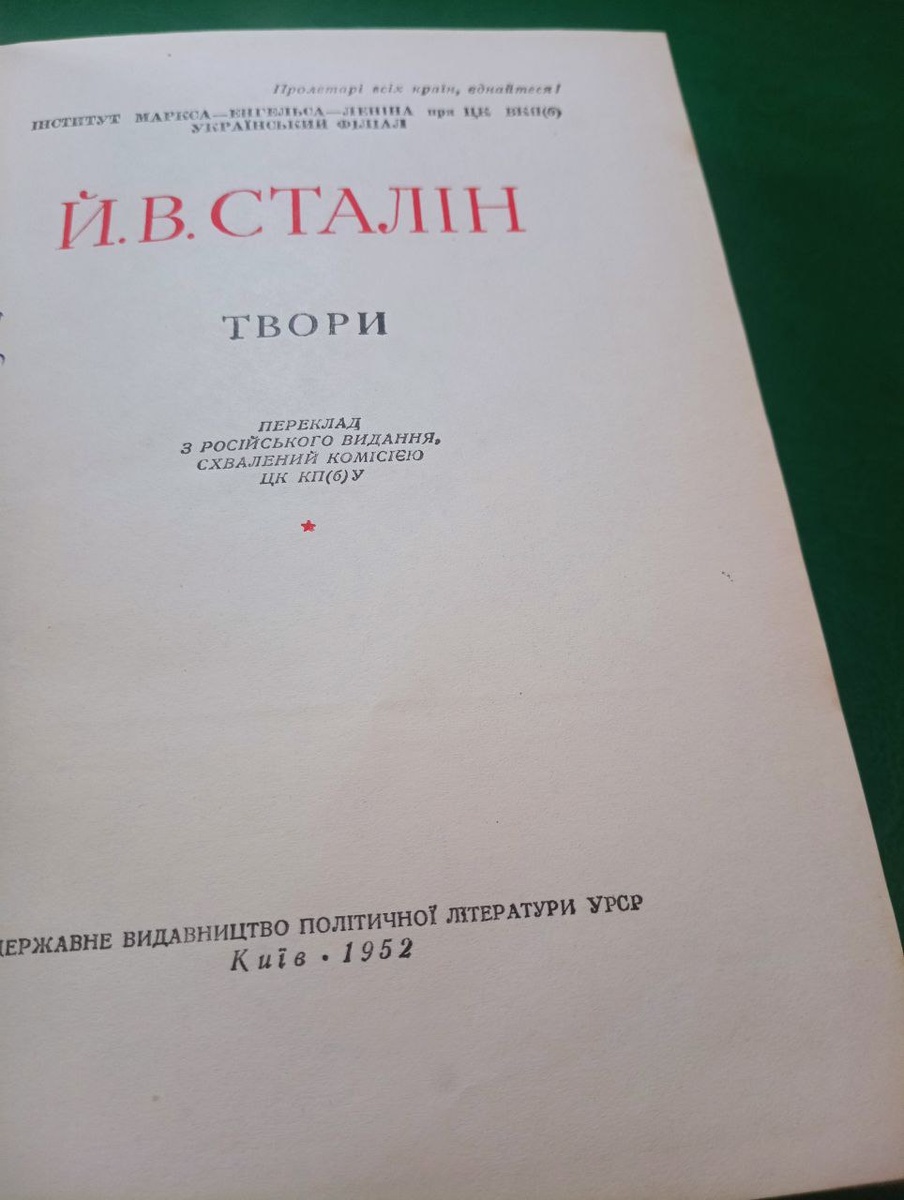 Прижизненное издание сочинений Сталина в переводе на украинский язык, с его личного одобрения.
