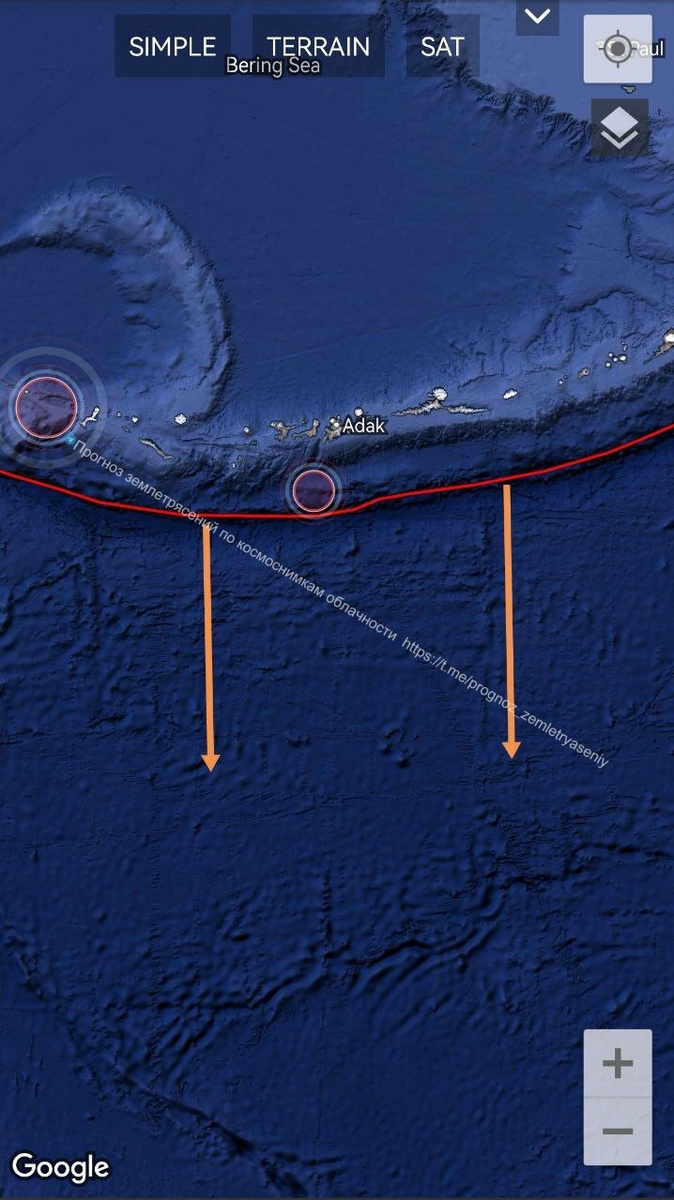 На этот раз выделилась рифтовая зона к югу от Адака.