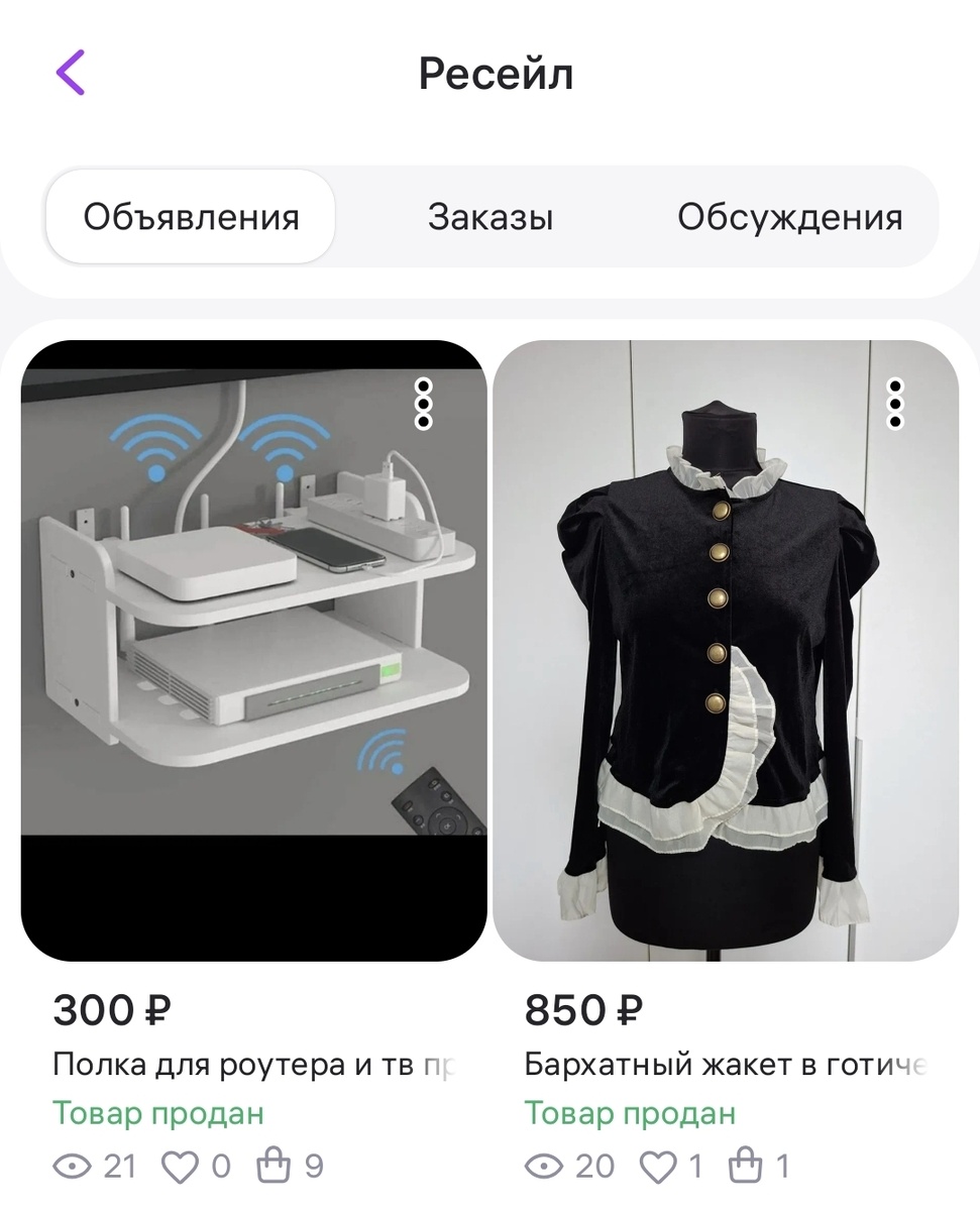 В целом, вб ресейл показал себя сильно лучше, чем юла (там не то что ноль продаж, даже просмотров "кот наплакал"), но до авито им далеко.