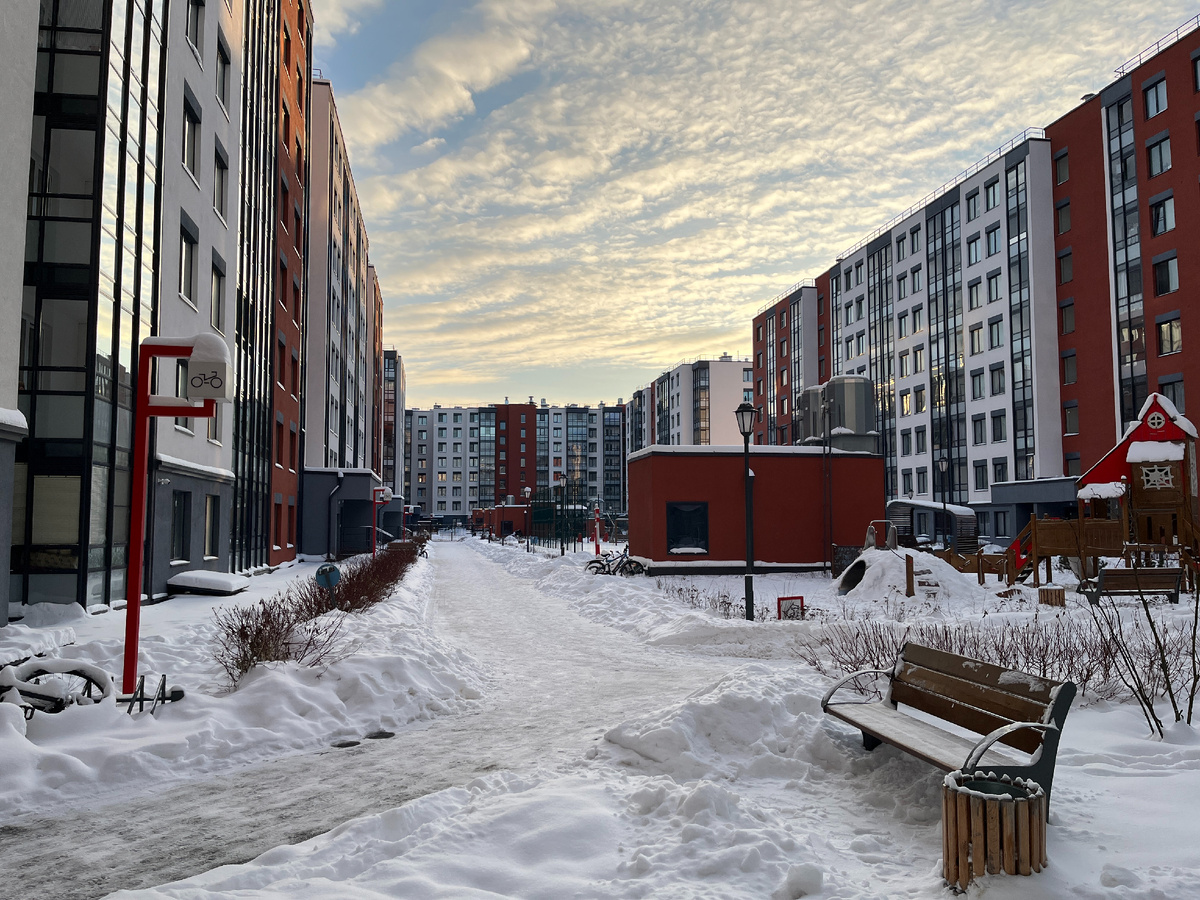 Архитектура здесь достаточно современная, дворы благоустроены, а сами дома выглядят более интересно, чем у некоторых конкурентов, которые находятся рядом.