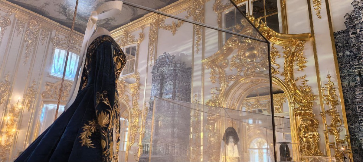 Позже золотное шитье вошло в светский быт. И прежде всего... поморских крестьян! О как!!! Они на фотографиях такие роскошно разодетые, что даже черно-белые изображения не умаляют блеска! Вся эта красота предоставлена каргопольским музеем. Подлинные вещи крестьян 19-начала 20 веков. Вещи из запасников самого Царского села - мундир камергера, парадное платье со шлейфом в 3,5 метра и свадебное платье Великой княжны Ксении Александровны (сестры Николая II). И костюм Николая II в модном тогда "русском стиле". К нему перчатки и сапоги. Это костюм для знаменитого бала в честь 300-летия Дома Романовых. Да. Никогда еще парадные залы не были так изысканно преображены. #царскоесело #екатерининскийдворец #северноесолнце #каргополь @karmuseum
