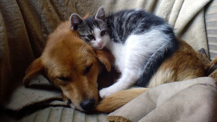 Что-то мешало ей. Что-то такое, маленькое. Прямо возле похудевшего собачьего пуза. Открыв глаза, Жужа с немым изумлением увидела малюсенького серого котёнка. Совсем недавно открывшего глазки. Котёнок пищал и жался к ней. Кто-то из соседей решил таким образом избавиться от потомства. И подбросил малыша маленькой рыжей собачке. Серый котёнок уткнулся головой и передними лапами в её живот и найдя сосок стал его причмокивать.